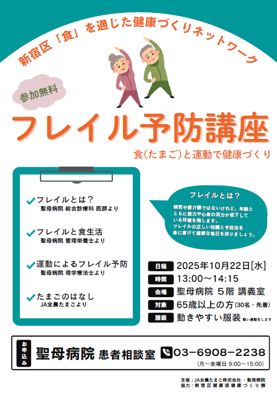 新宿区「食」を通じた健康づくりネットワークに登録している、聖母病院とJA全農たまご(株)が実施する健康教室です。