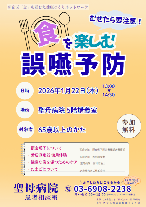 新宿区「食」を通じた健康づくりネットワークに登録している、聖母病院とJA全農たまご(株)が開催する健康教室です。