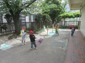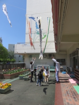 園庭にこいのぼりを揚げました。