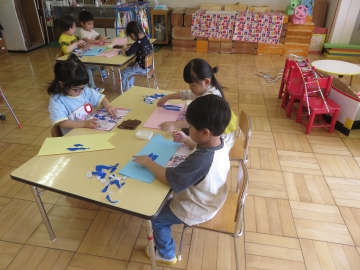 折り紙をちぎって、のりで貼り