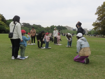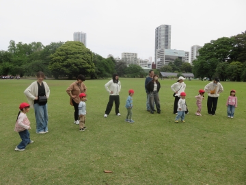 - 戸山公園や小学校の校庭を活用し、広い場所でのびのびと体を動かす楽しさや、挑戦する楽しさを味わわせる。