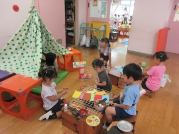 幼稚園でもキャンプごっこをして楽しんでいます。