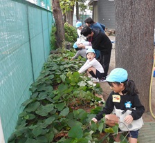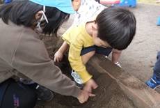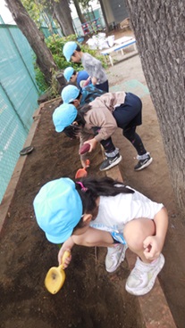 掘る時も、4歳児ちょうちょう組さんが、自分でできるようにお手伝いします。