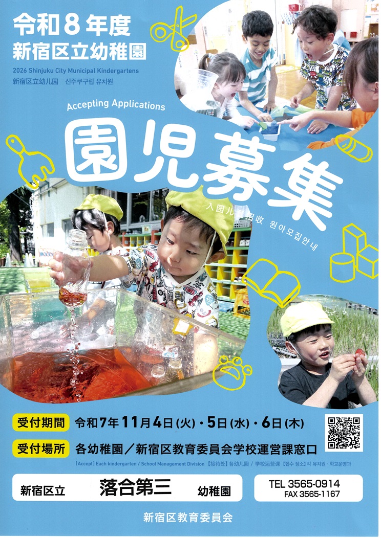 令和8年度 新宿区立幼稚園 園児募集が始まります。