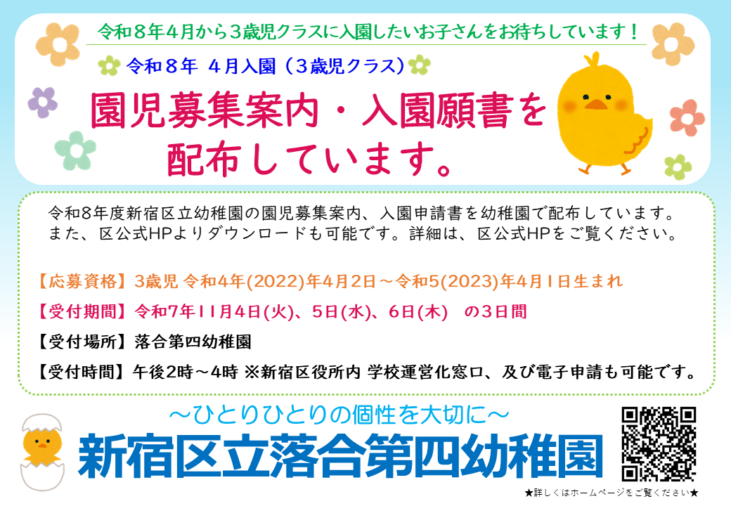 令和8年度新宿区立幼稚園の園児募集案内、入園申請書の配布が10月15日(水)から始まりました。