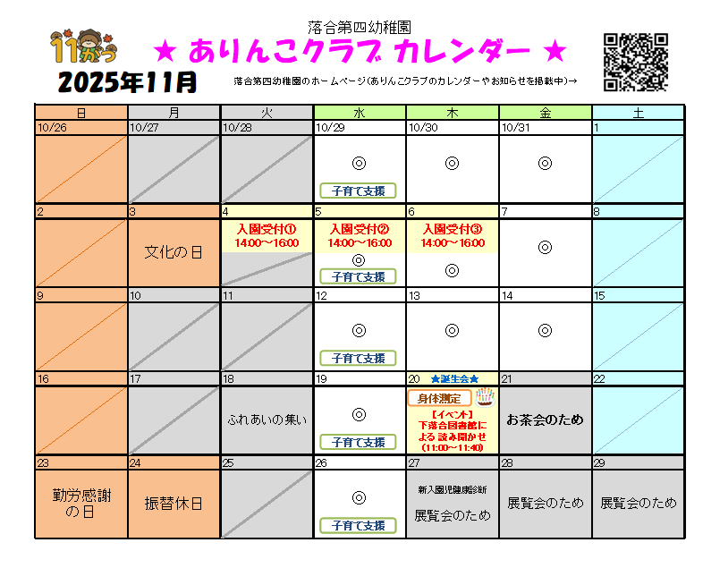 ●「ありんこクラブ11月予定表」を掲載しました。(令和7年10月21日)