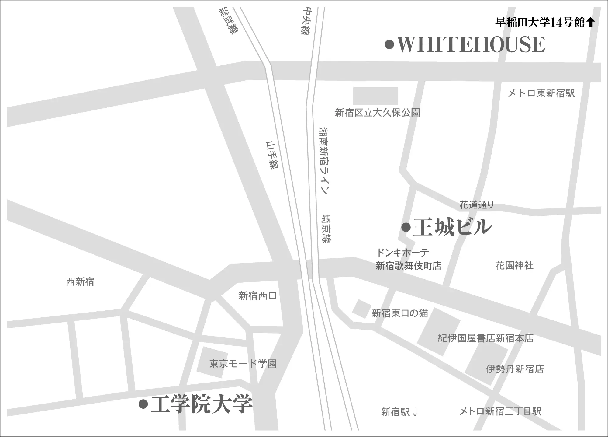 ○WHITEHOUSE 東京都新宿区百人町1-1-8 JR新大久保駅西側出口より徒歩6分