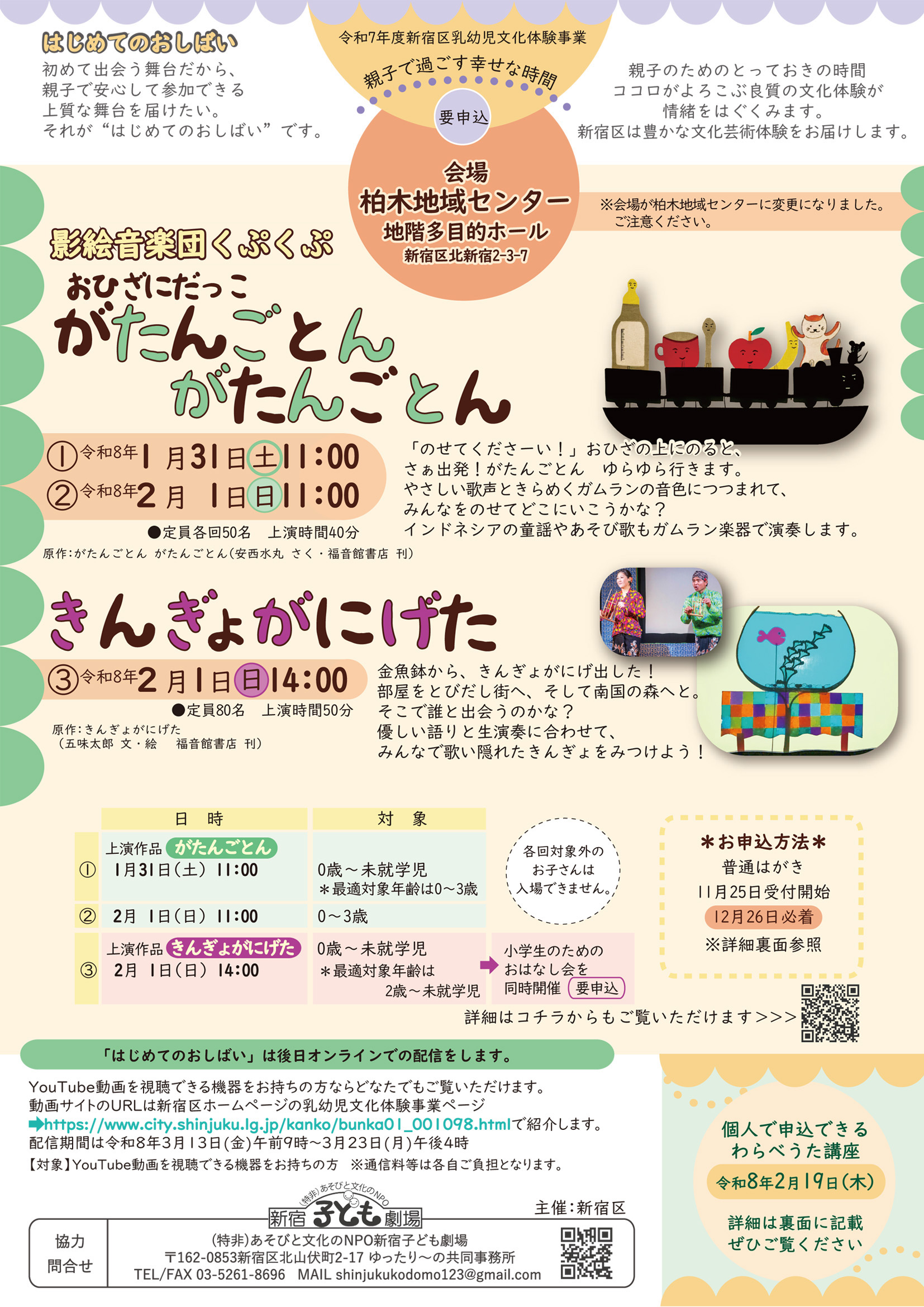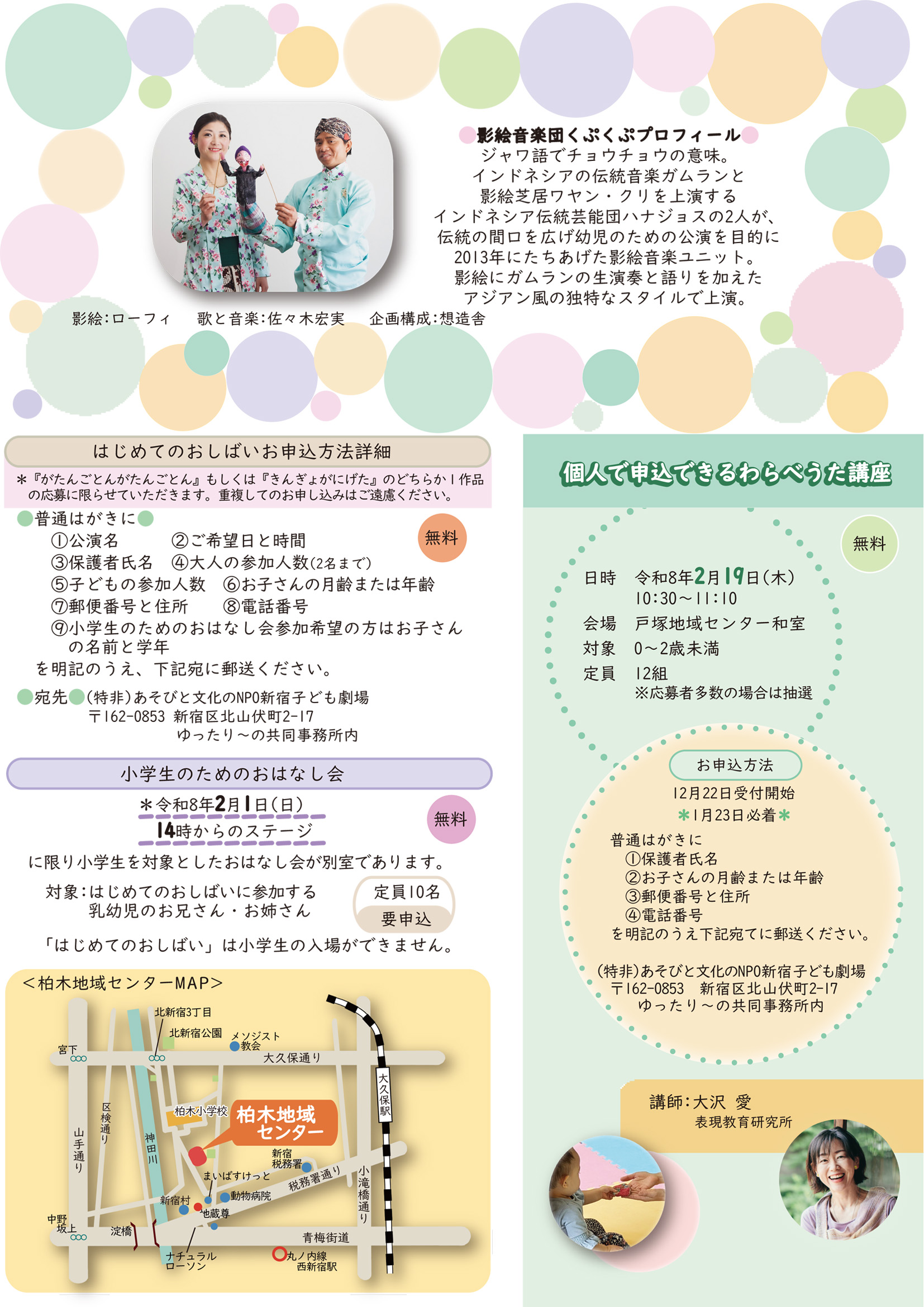 問合せ (特非)あそびと文化のNPO新宿子ども劇場 TEL/FAX 03-5261-8696