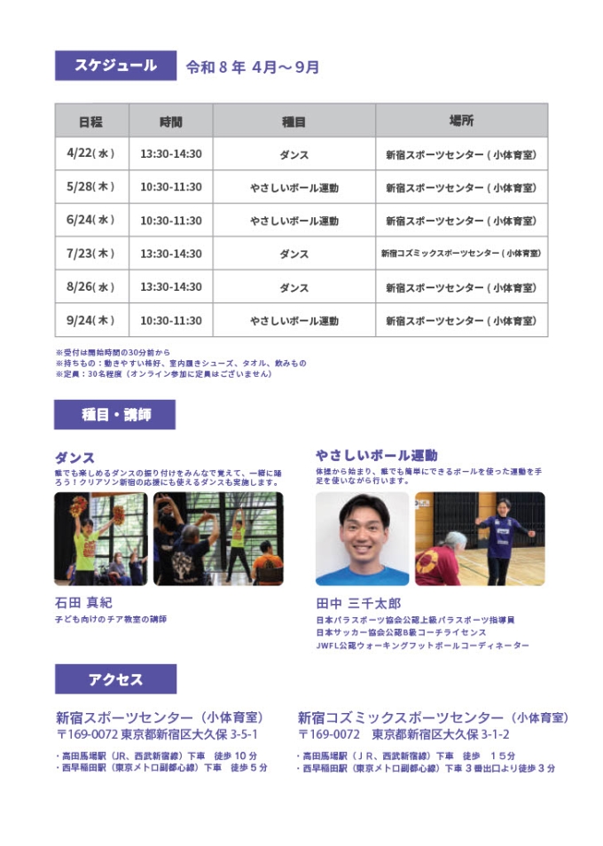 | 8月26日(水) | 13:30~14:30 | ダンス | 新宿スポーツセンター |