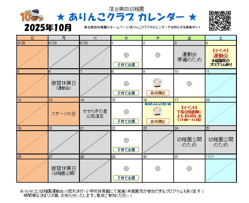 ●「ありんこクラブ10月予定表」を掲載しました。(令和7年9月30日)