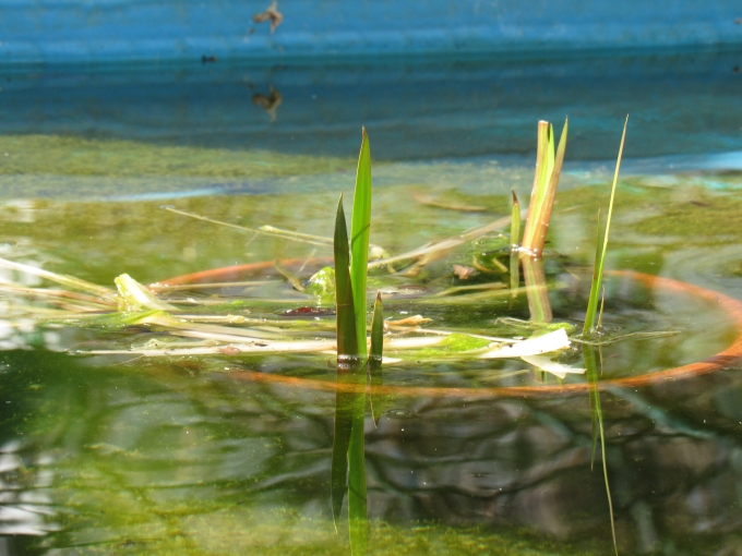 池ではアシの芽が伸びてきました。