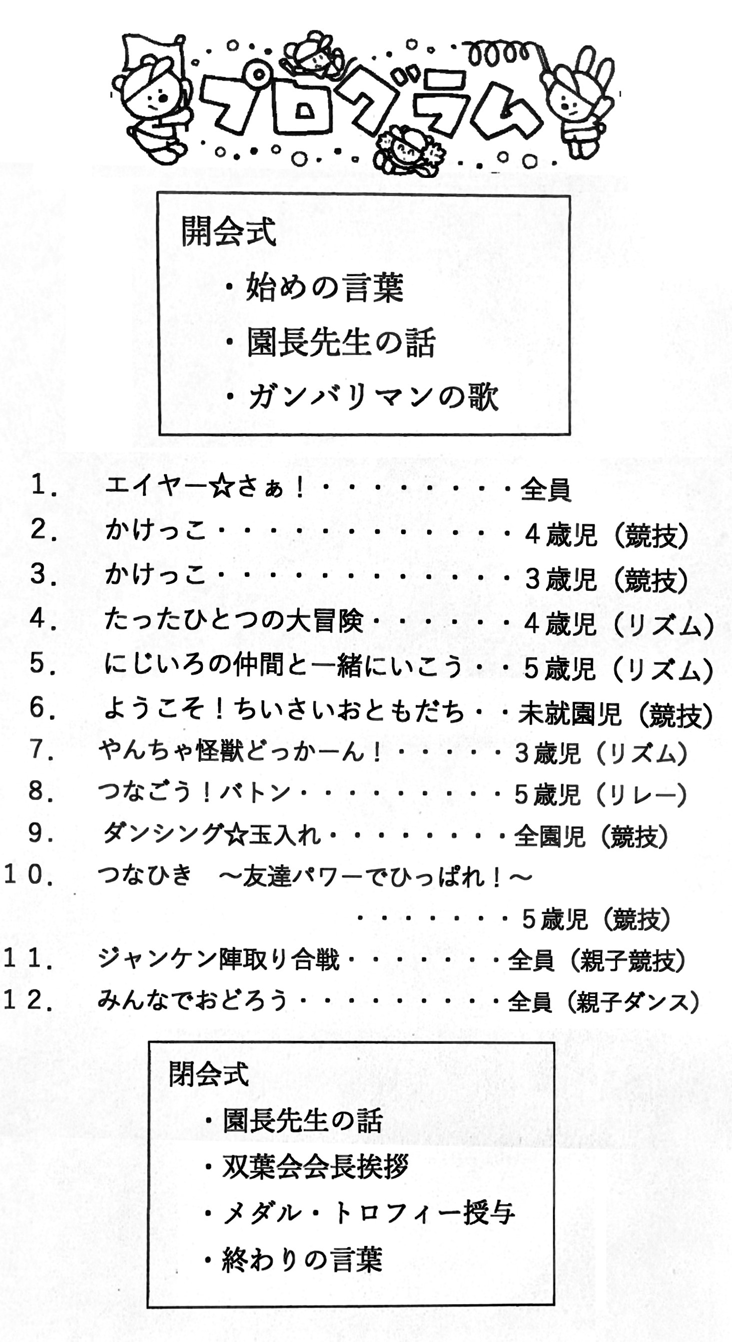 鶴巻幼稚園運動会プログラム
