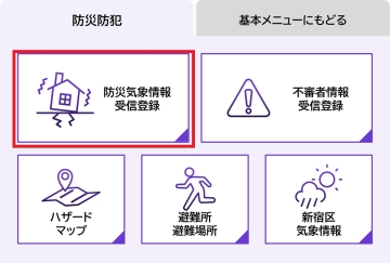 2 「防災気象情報受信登録」をタップする。