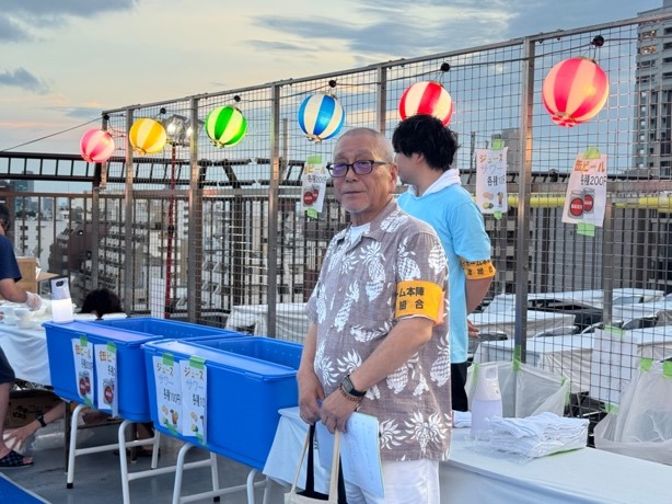 富久町にあるマンション「ハイホーム本陣」では、管理組合の理事会を中心にマンション内での交流や防災力向上の取り組みが行われています。この夏、神宮外苑花火大会当日にあわせて、マンション屋上で花火大会の鑑賞イベント(「ハイホーム本陣納涼大会」)を主催した管理組合の杉田理事長、岩田防災委員長にお話を伺いました。
