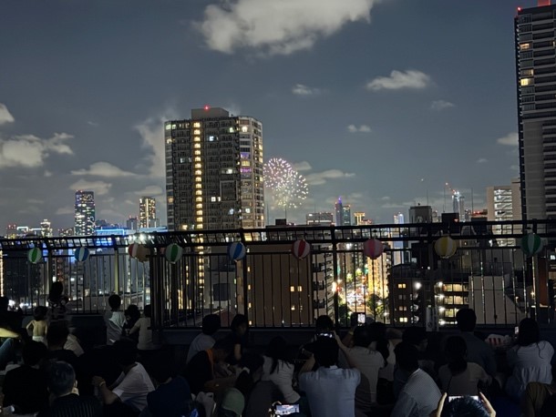 ハイホーム本陣では、神宮外苑花火大会開催に合わせて、マンションの屋上から花火大会鑑賞などを行う、納涼大会が夏の恒例行事となっています。