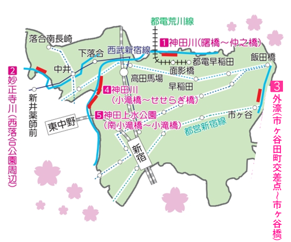 さくらのライトアップ実施箇所図皆さまに気持ちよくさくらの観賞を楽しんでもらうために